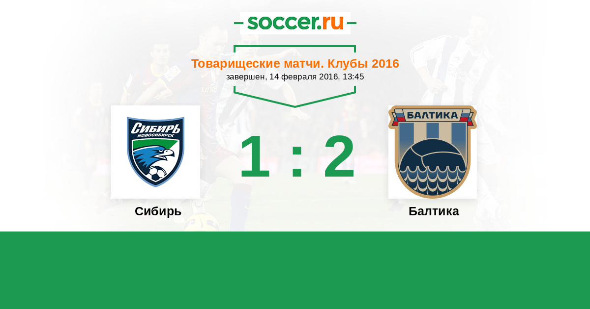 Россия. Первая лига 20.03.2016 Балтика Логотип футбольный клуб Балтика (Калининград) 3:1 Логотип футбольный клуб Сибирь (Новосибирск) Сибирь