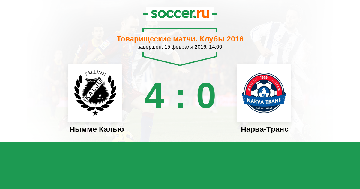 Эстония. Высшая лига 09.04.2016 Нымме Калью Логотип футбольный клуб Нымме Калью (Таллин) 6:0 Логотип футбольный клуб Нарва-Транс Нарва-Транс