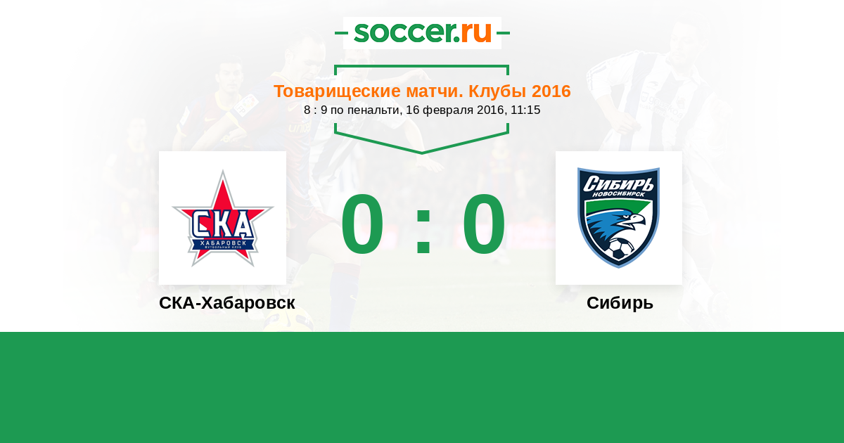 Россия. Первая лига 27.07.2016 Сибирь Логотип футбольный клуб Сибирь (Новосибирск) 0:0 Логотип футбольный клуб СКА-Хабаровск СКА-Хабаровск