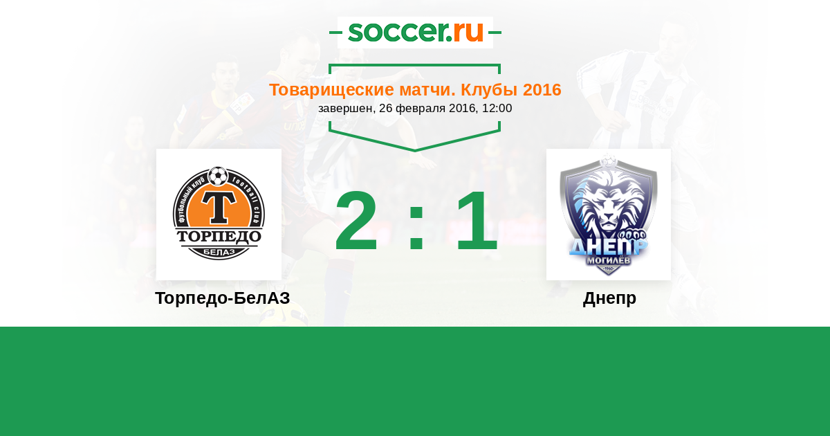 Беларусь. Высшая лига 08.04.2013 Торпедо-БелАЗ Логотип футбольный клуб Торпедо-БелАЗ (Жодино) 1:0 Логотип футбольный клуб Днепр (Могилев) Днепр