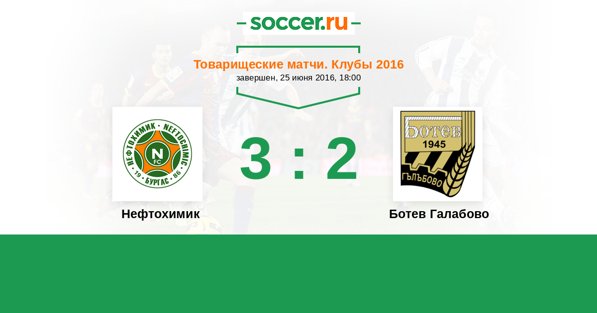 Болгария. Вторая лига 07.05.2016 Ботев Галабово Логотип футбольный клуб Ботев Галабово 4:2 Логотип футбольный клуб Нефтохимик (Бургас) Нефтохимик