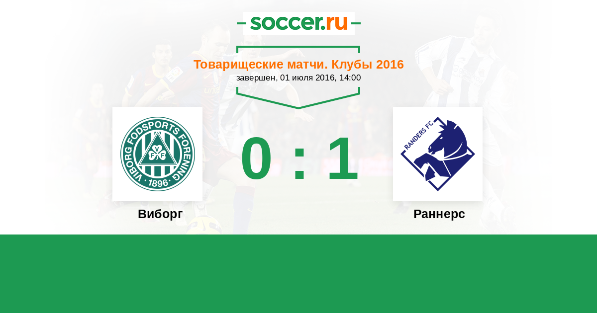 Дания. Суперлига 12.08.2016 Виборг Логотип футбольный клуб Виборг 0:1 Логотип футбольный клуб Раннерс Раннерс