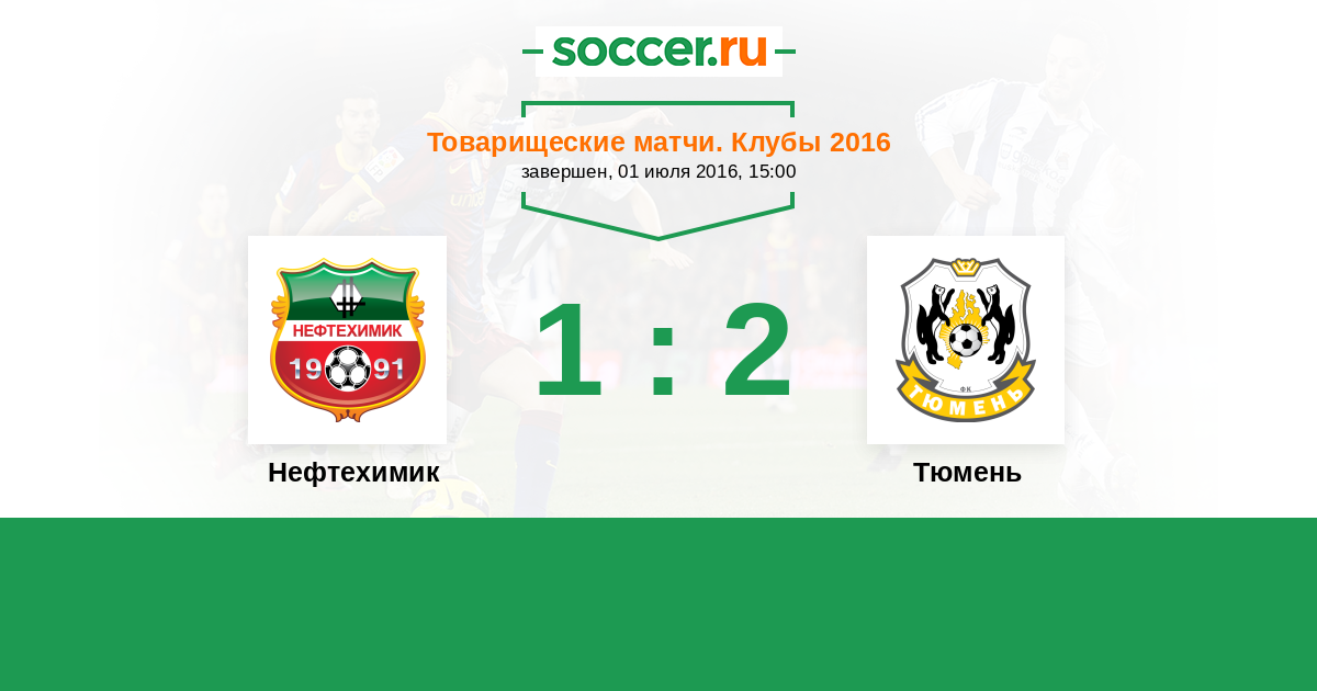 Товарищеские матчи. Клубы 27.06.2016 Тюмень Логотип футбольный клуб Тюмень 1:2 Логотип футбольный клуб Нефтехимик (Нижнекамск) Нефтехимик