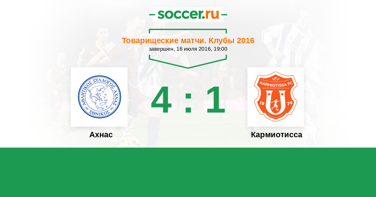 Кипр. Первый Дивизион 29.10.2016 Ахнас Логотип футбольный клуб Ахнас 4:2 Логотип футбольный клуб Кармиотисса (Пано Полемидиа) Кармиотисса
