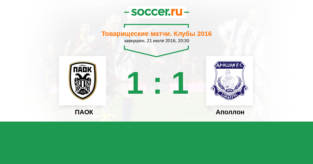 Матч ПАОК против Аполлон