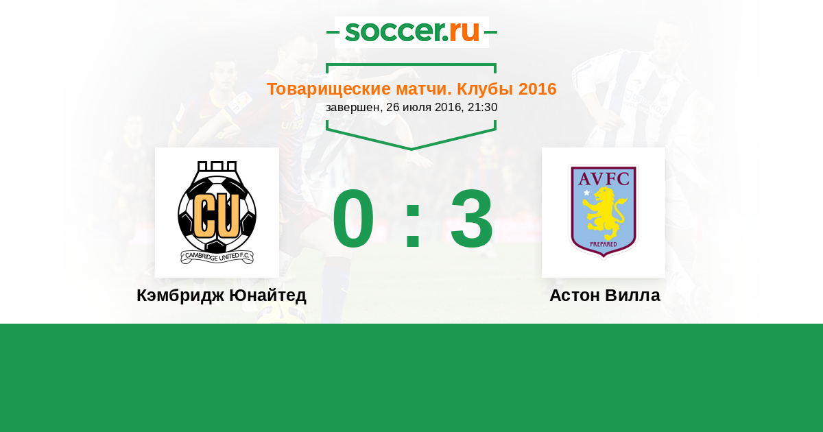 Матч Кэмбридж Юнайтед против Астон Вилла