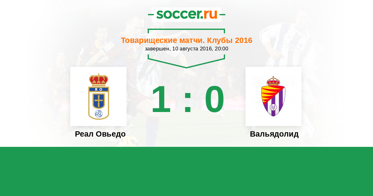 Испания. Сегунда 21.08.2016 Вальядолид Логотип футбольный клуб Вальядолид 1:0 Логотип футбольный клуб Реал Овьедо Реал Овьедо