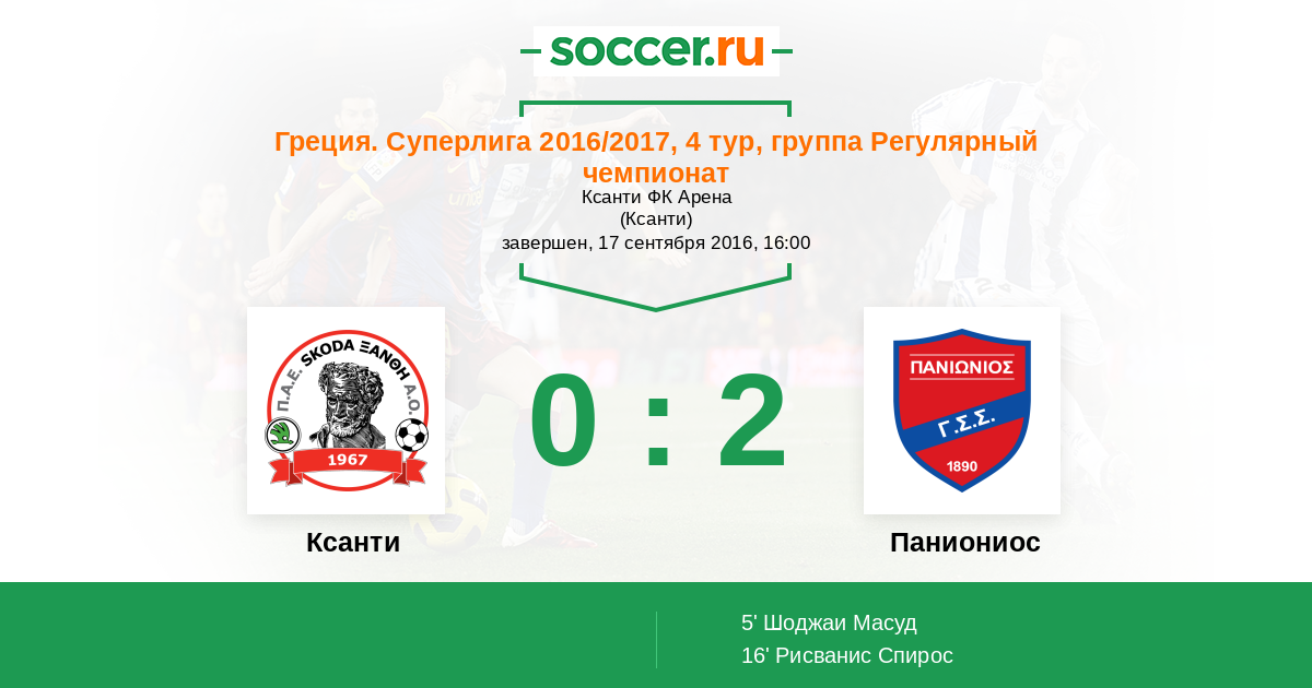 Протокол матча Ксанти против Паниониос