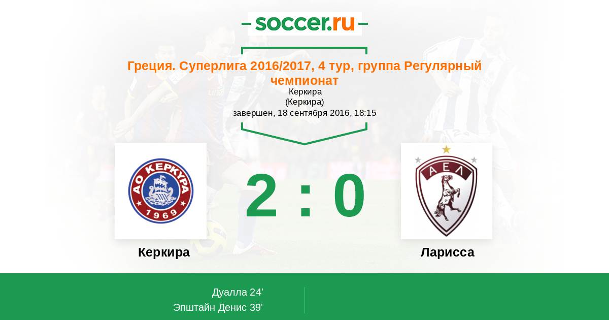 Протокол матча Керкира против Ларисса