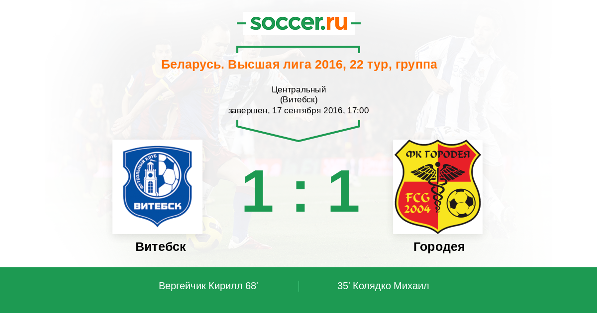 Протокол матча Витебск против Городея