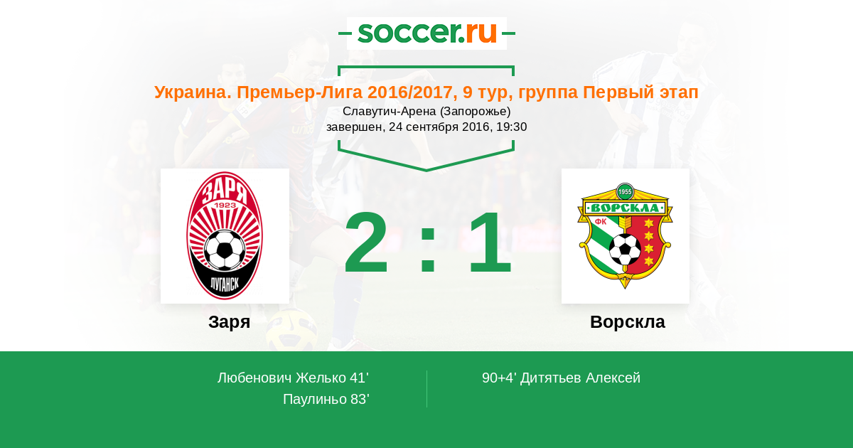 Протокол матча Заря против Ворскла
