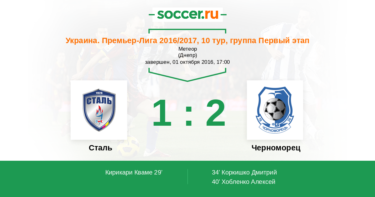 Протокол матча Сталь против Черноморец
