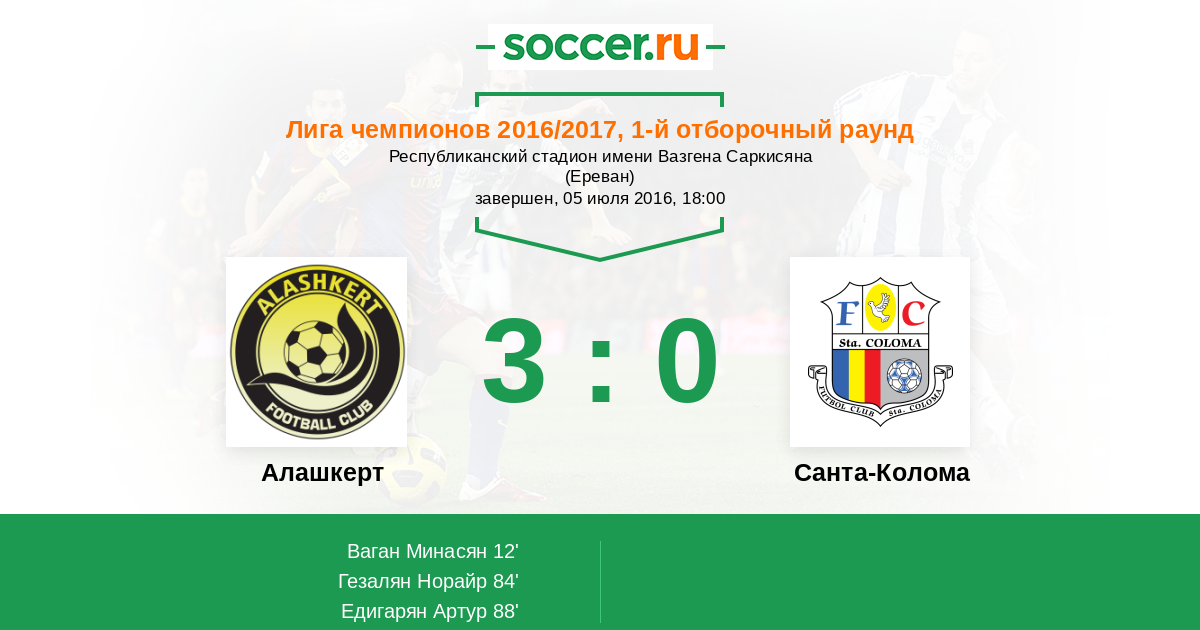 Протокол матча Алашкерт против Санта-Колома