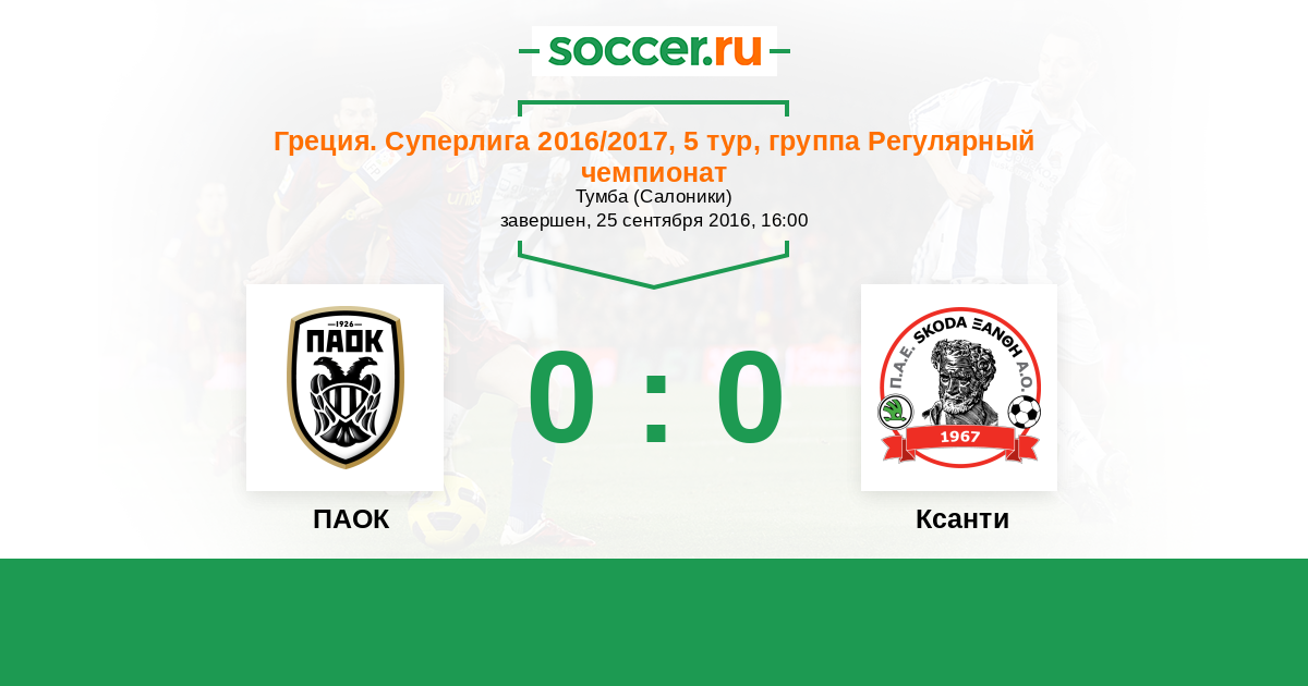 Протокол матча ПАОК против Ксанти