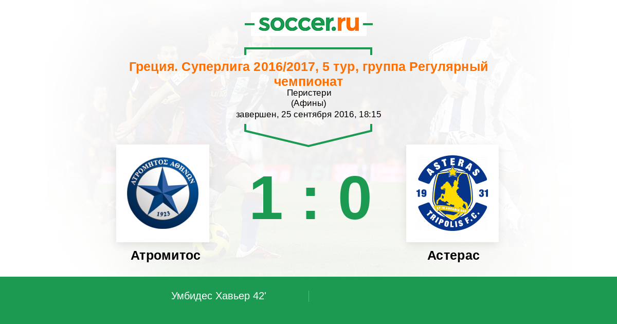 42' (1:0) Умбидес Хавьер (8) (Кейта Поль (15))