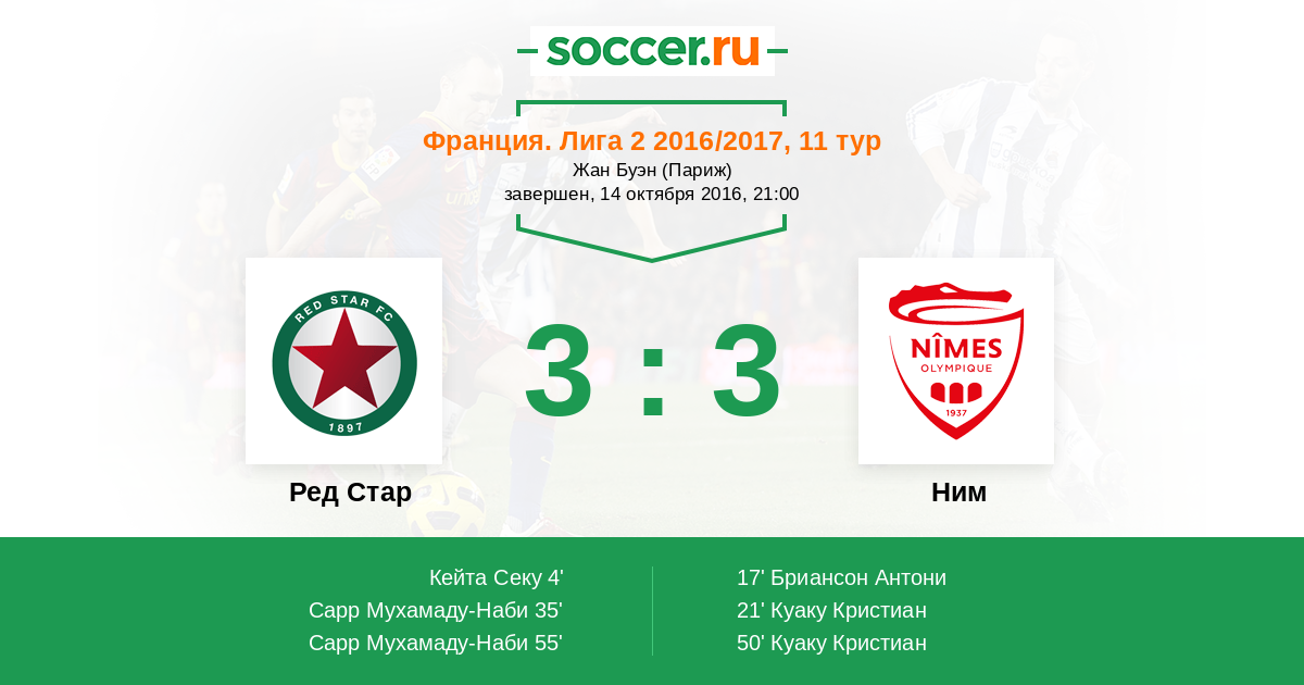Протокол матча Ред Стар против Ним