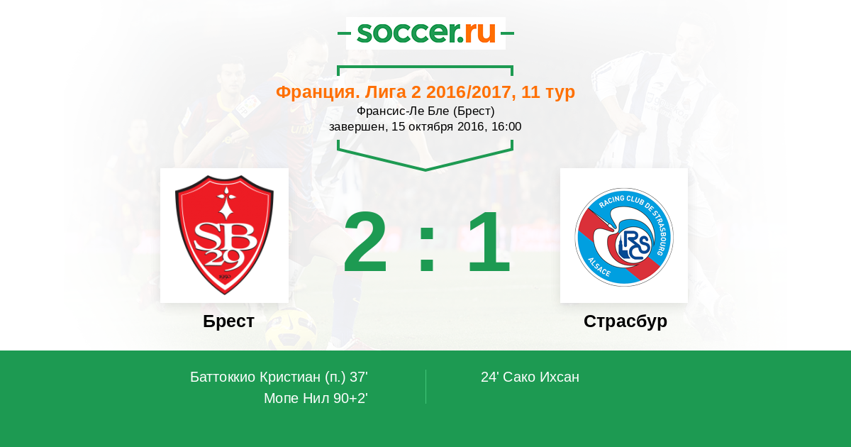 Протокол матча Брест против Страсбур