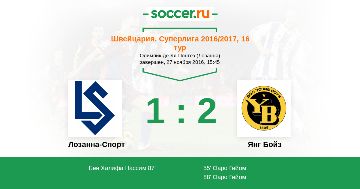 Протокол матча Лозанна-Спорт против Янг Бойз