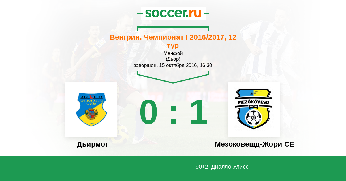 Протокол матча Дьирмот против Мезоковешд-Жори СЕ