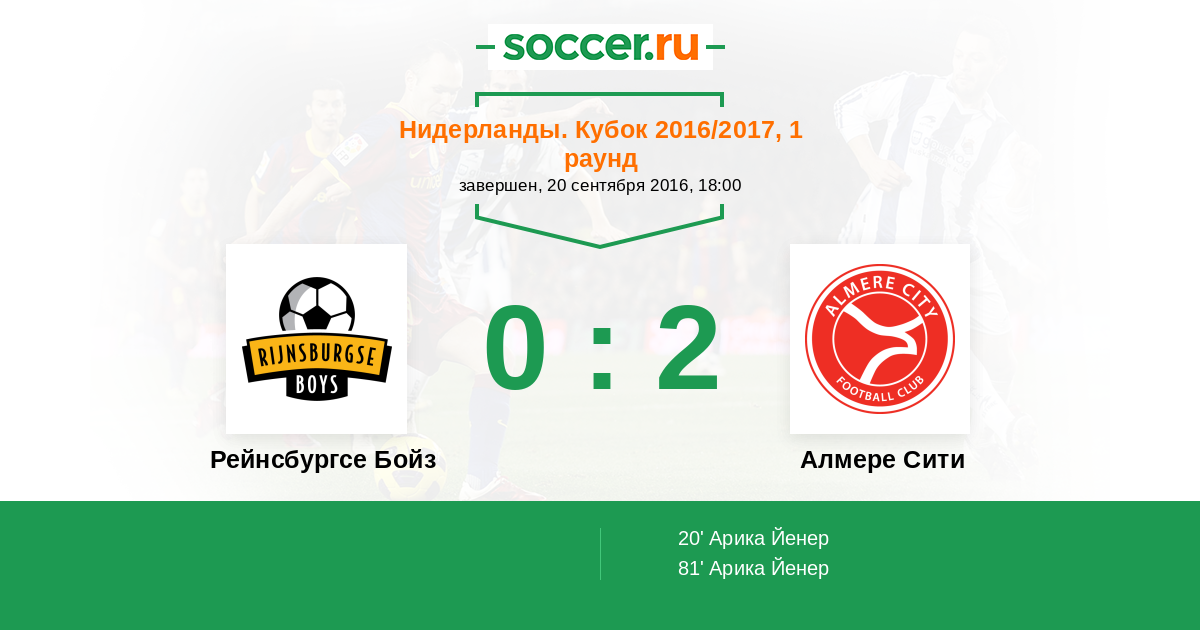 Протокол матча Рейнсбургсе Бойз против Алмере Сити