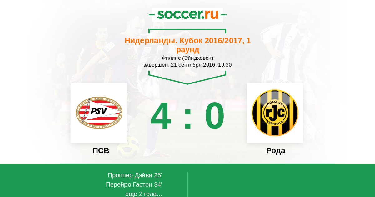 Протокол матча ПСВ против Рода