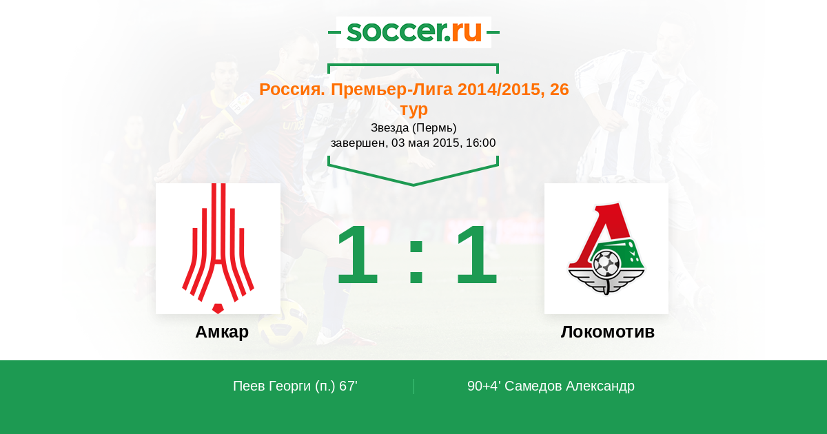 Протокол матча Амкар против Локомотив