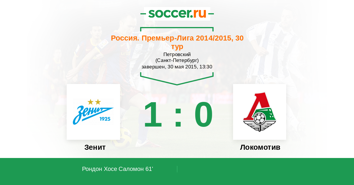 Протокол матча Зенит против Локомотив