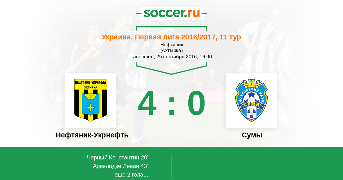 Протокол матча Нефтяник-Укрнефть против Сумы