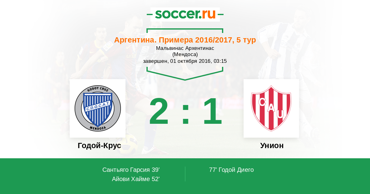 Протокол матча Годой-Крус против Унион