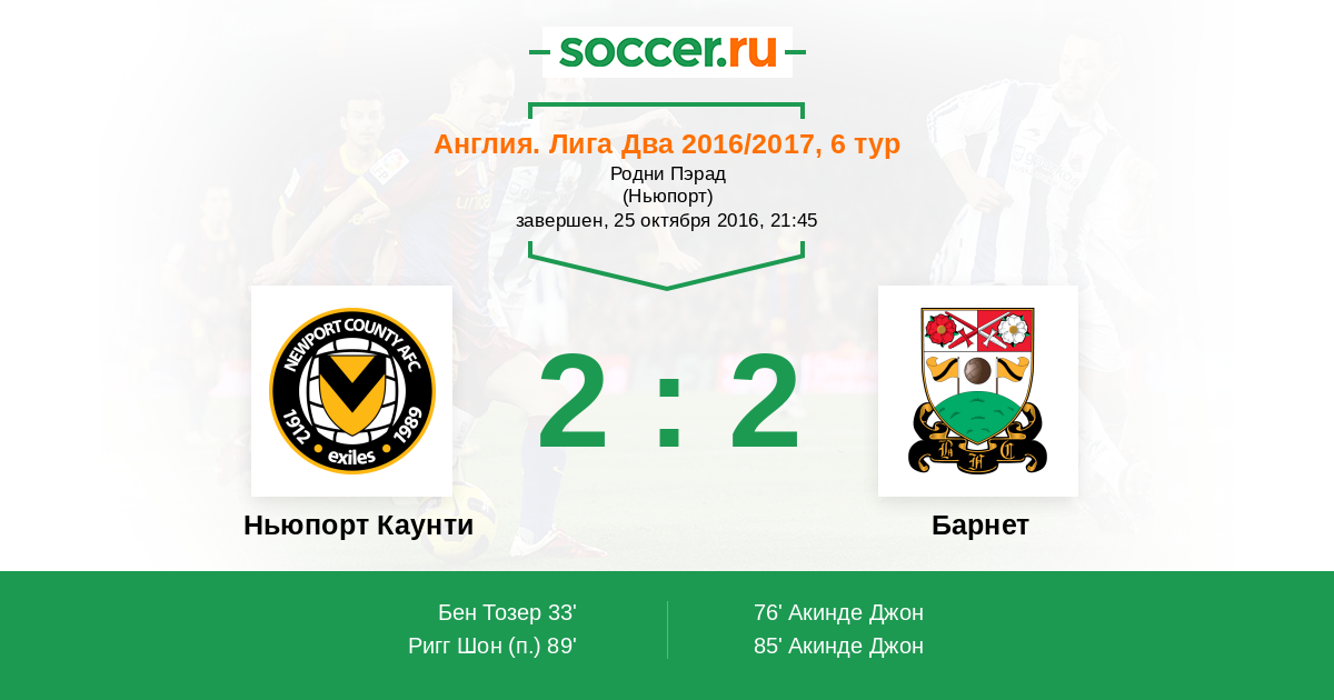 Протокол матча Ньюпорт Каунти против Барнет