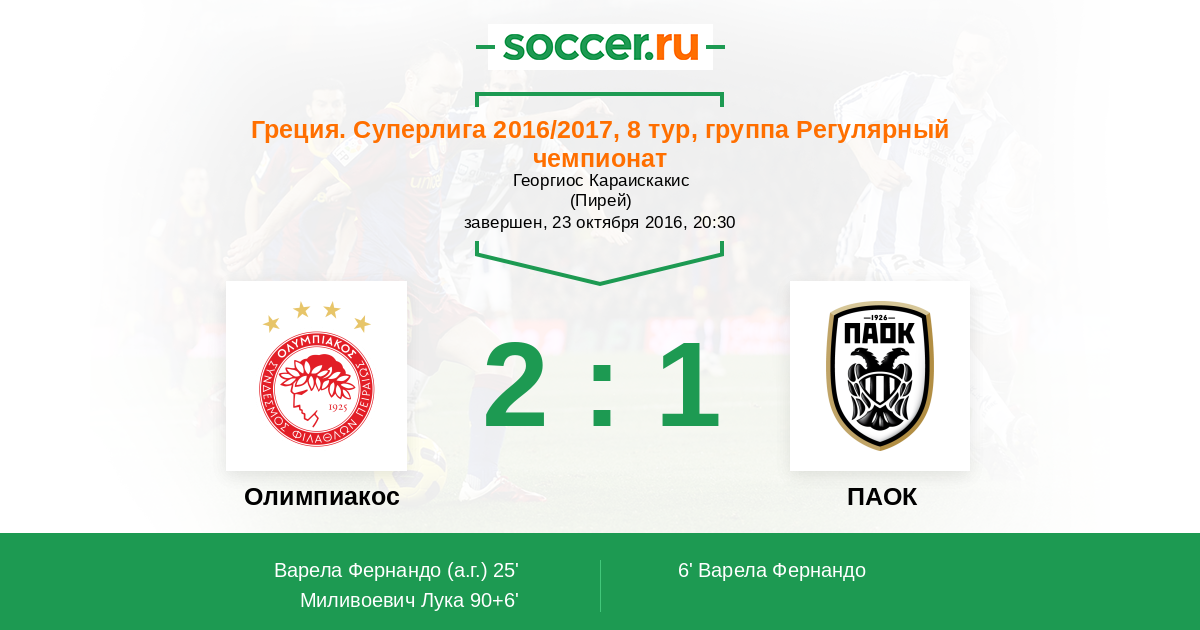 Протокол матча Олимпиакос против ПАОК