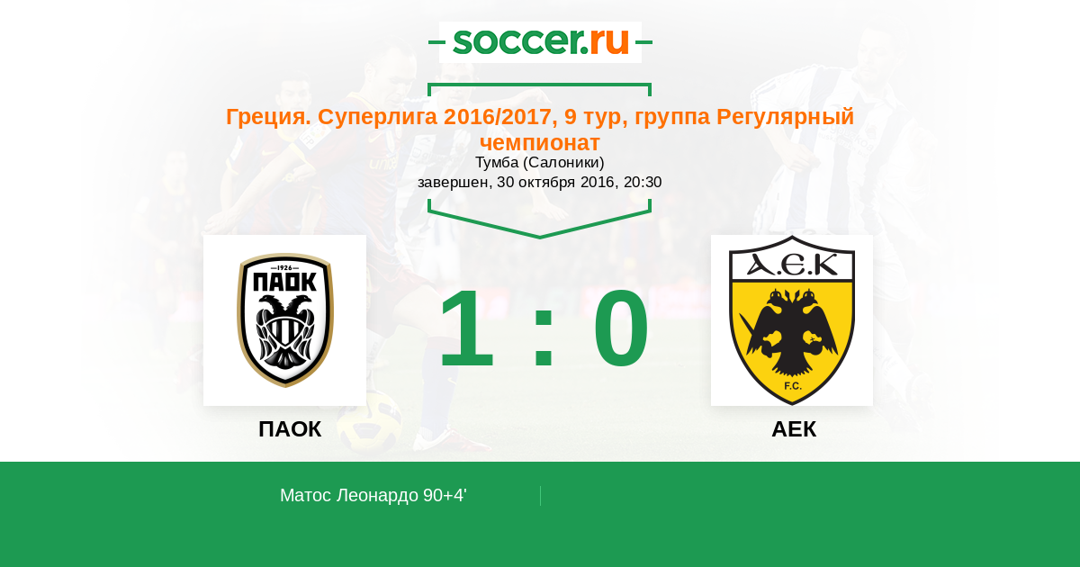 Протокол матча ПАОК против АЕК