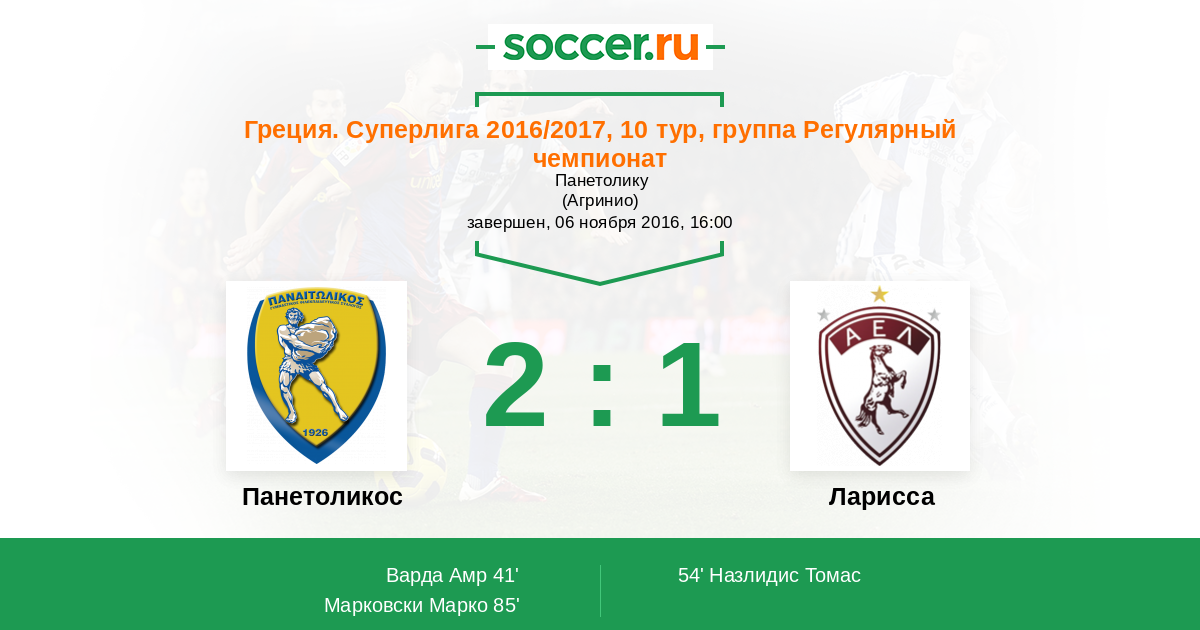Протокол матча Панетоликос против Ларисса