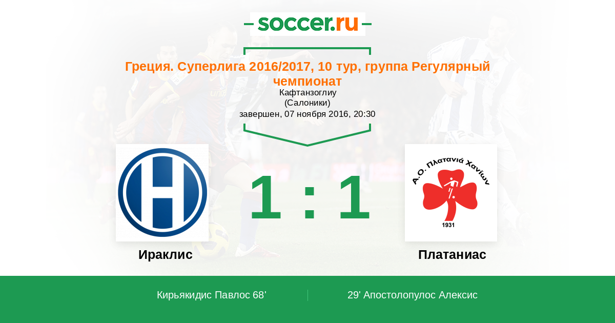 29' (0:1) Апостолопулос Алексис (77) (Якумакис Гиоргос (11))