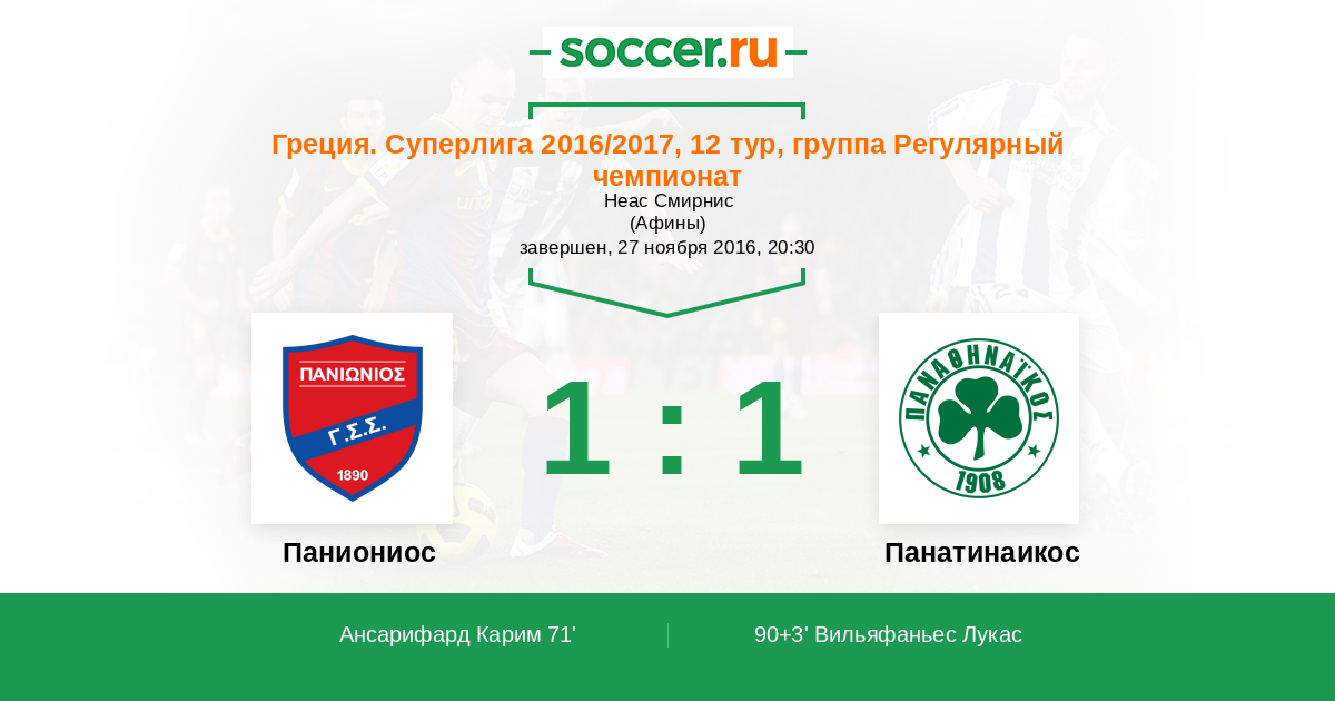 Протокол матча Паниониос против Панатинаикос