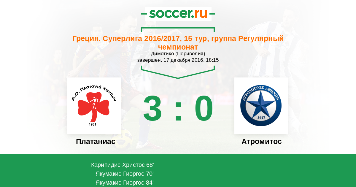 Протокол матча Платаниас против Атромитос