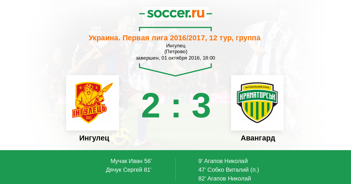 Протокол матча Ингулец против Авангард