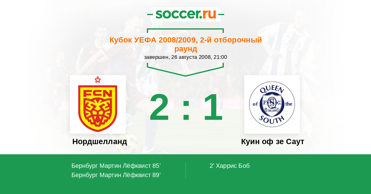 Протокол матча Нордшелланд против Куин оф зе Саут