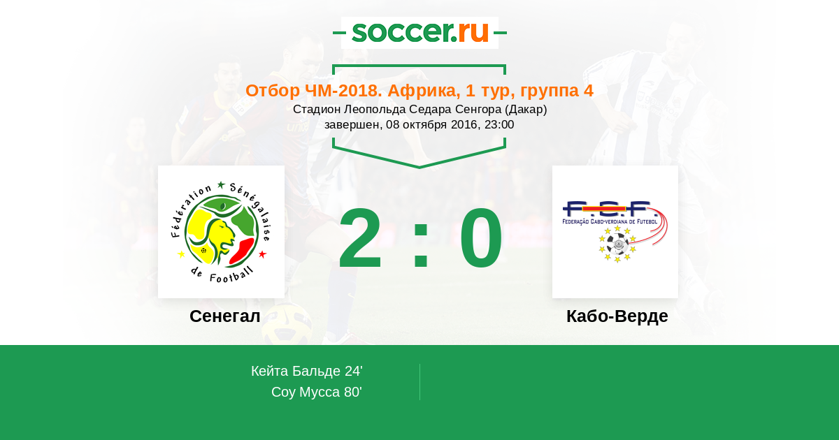 Протокол матча Сенегал против Кабо-Верде