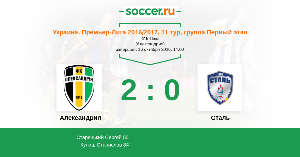 Протокол матча Александрия против Сталь