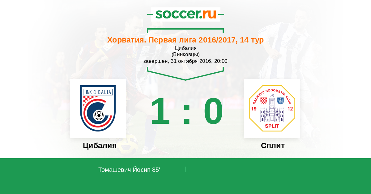 Протокол матча Цибалия против Сплит