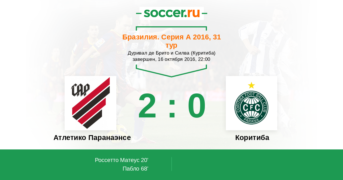 Протокол матча Атлетико Паранаэнсе против Коритиба
