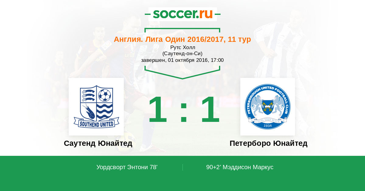 Протокол матча Саутенд Юнайтед против Петерборо Юнайтед