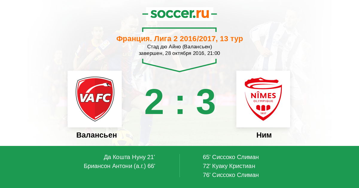 Протокол матча Валансьен против Ним