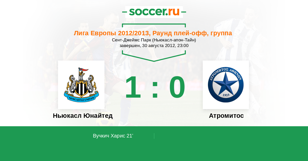 Протокол матча Ньюкасл Юнайтед против Атромитос