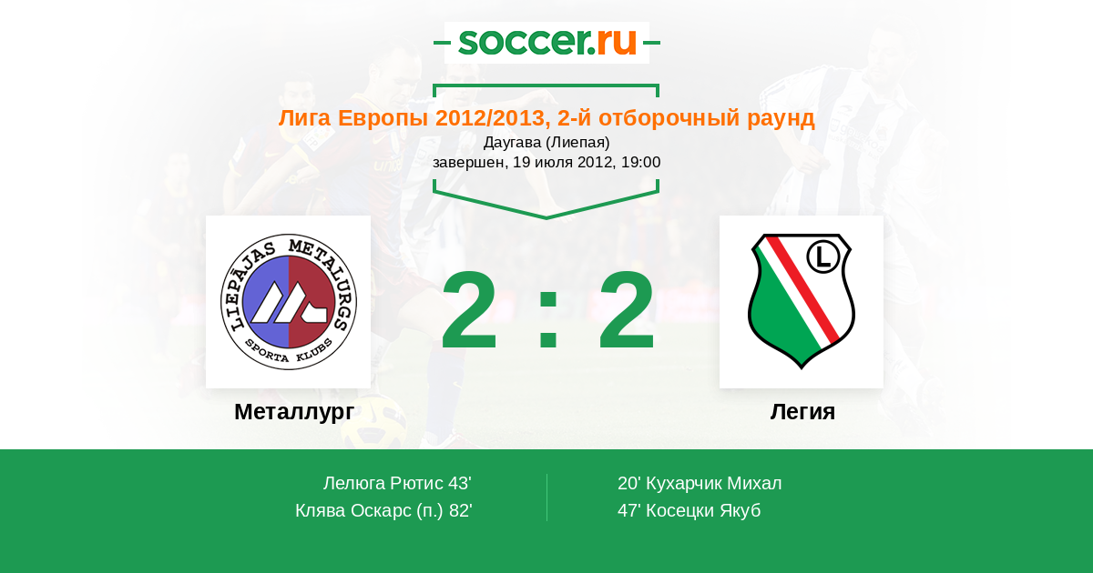 Протокол матча Металлург против Легия