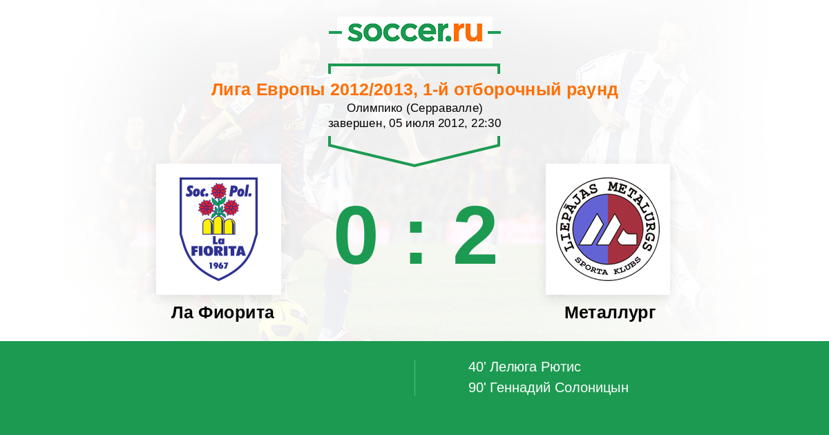 Протокол матча Ла Фиорита против Металлург