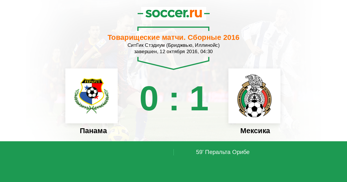 59' (0:1) Перальта Орибе (19) (дос Сантос Джовани (10))