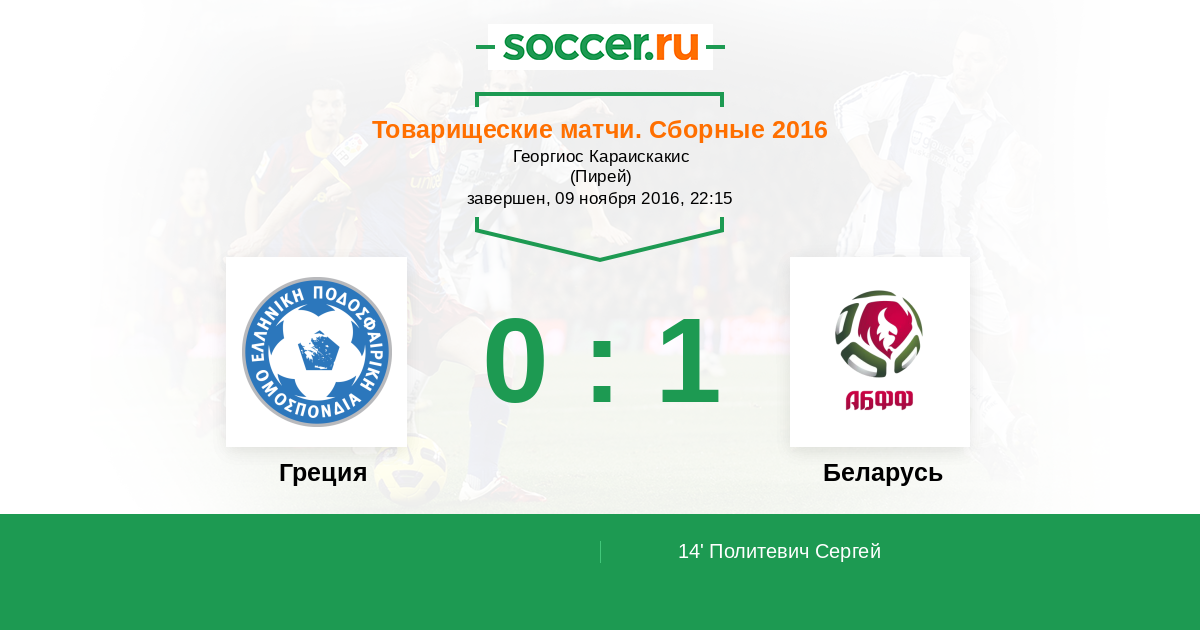 Протокол матча Греция против Беларусь
