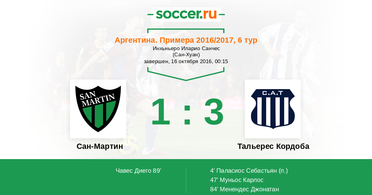 Протокол матча Сан-Мартин против Тальерес Кордоба